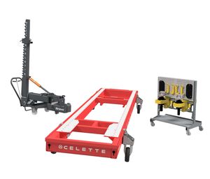 Kompletna mobilna rama naprawcza na kołach do napraw lekkich i średnich uszkodzeń.