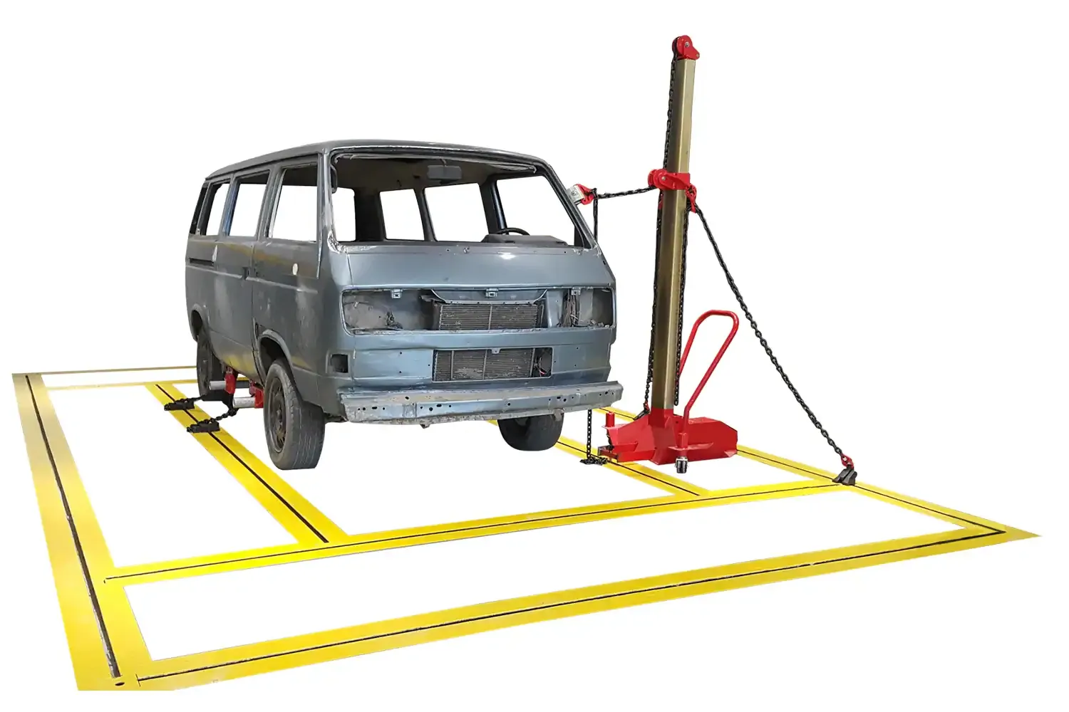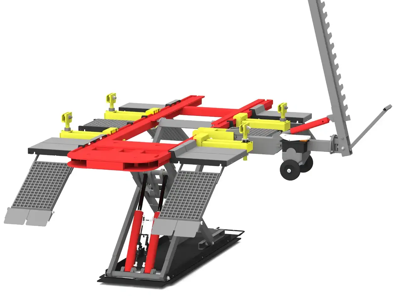 Mobilna rama prostująca do efektywnych napraw blacharskich.